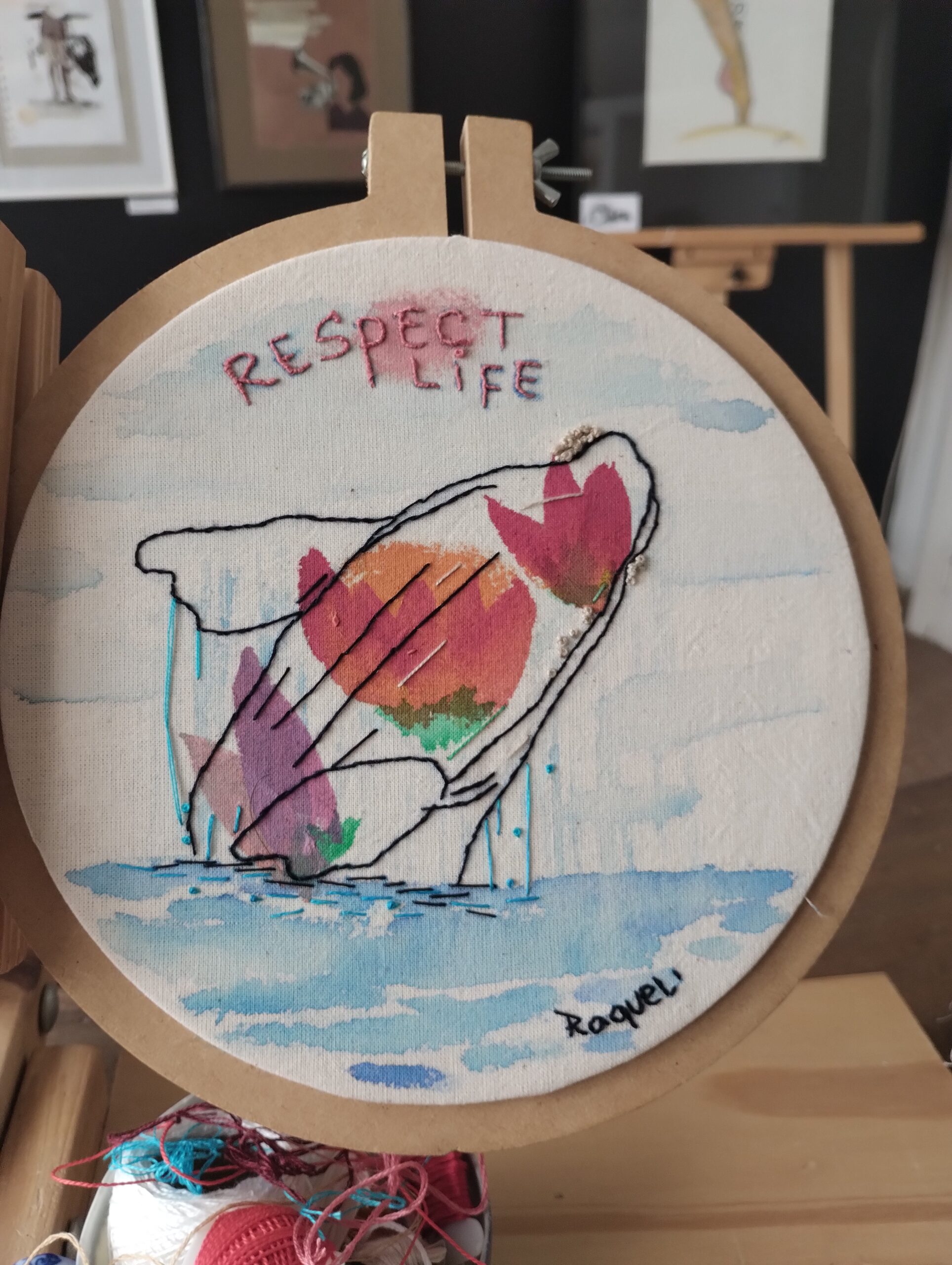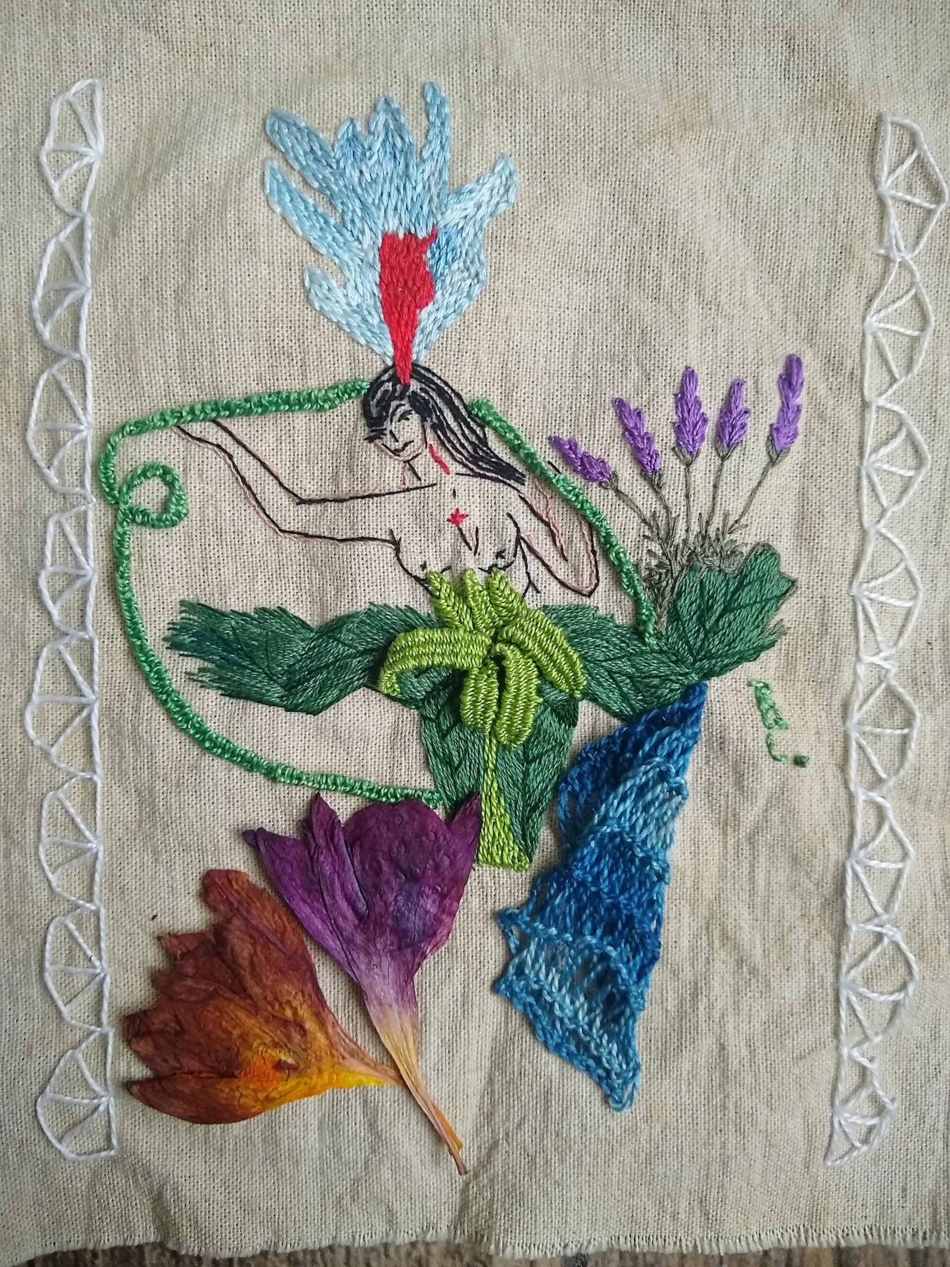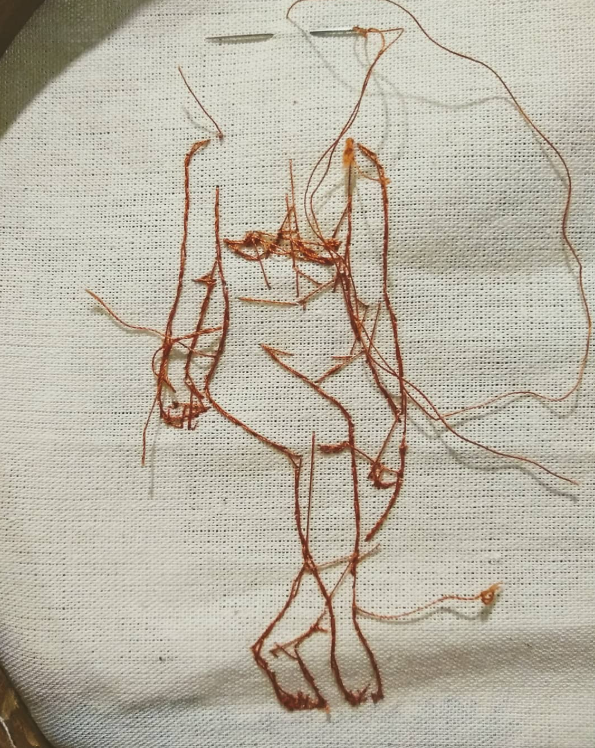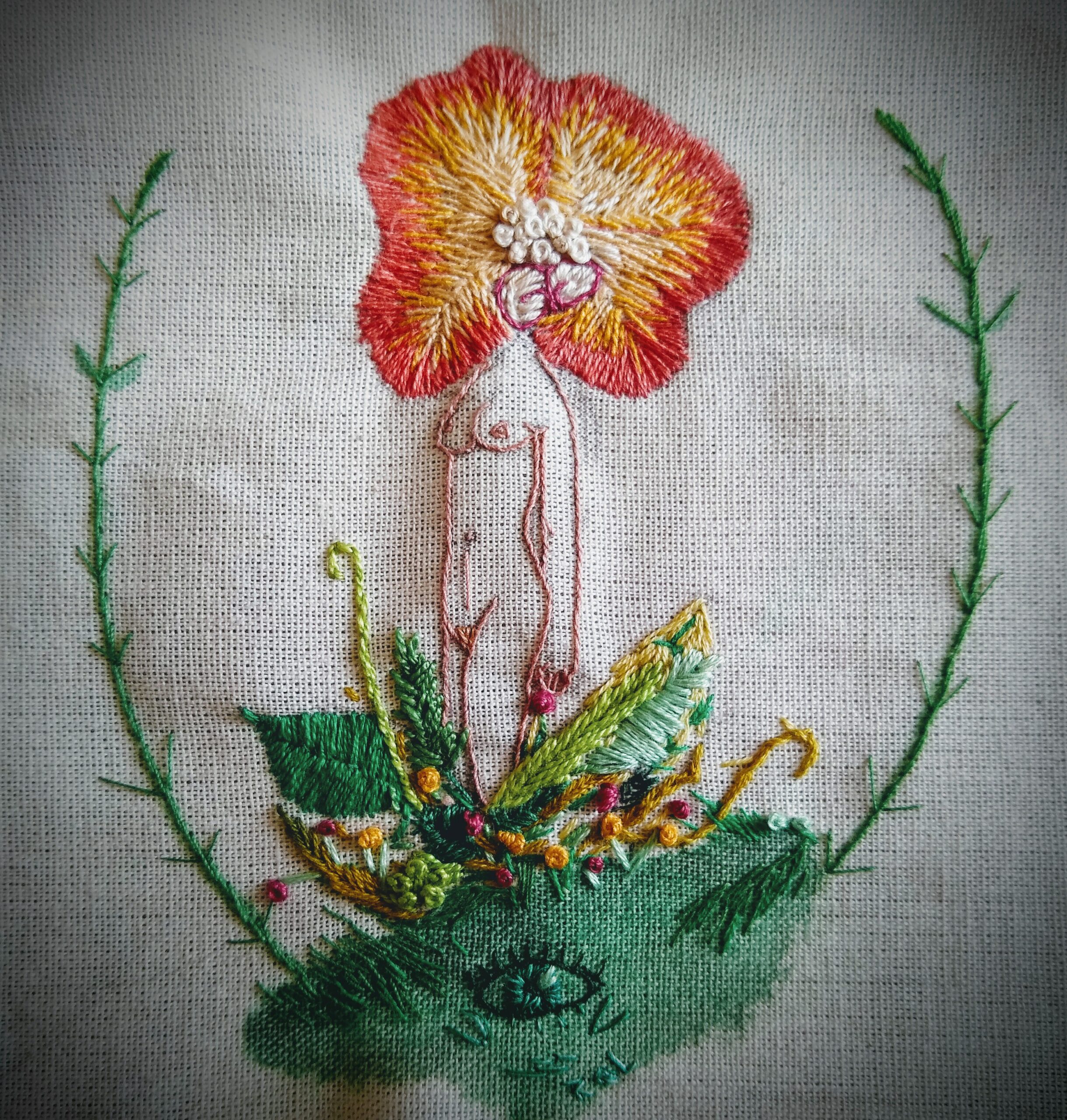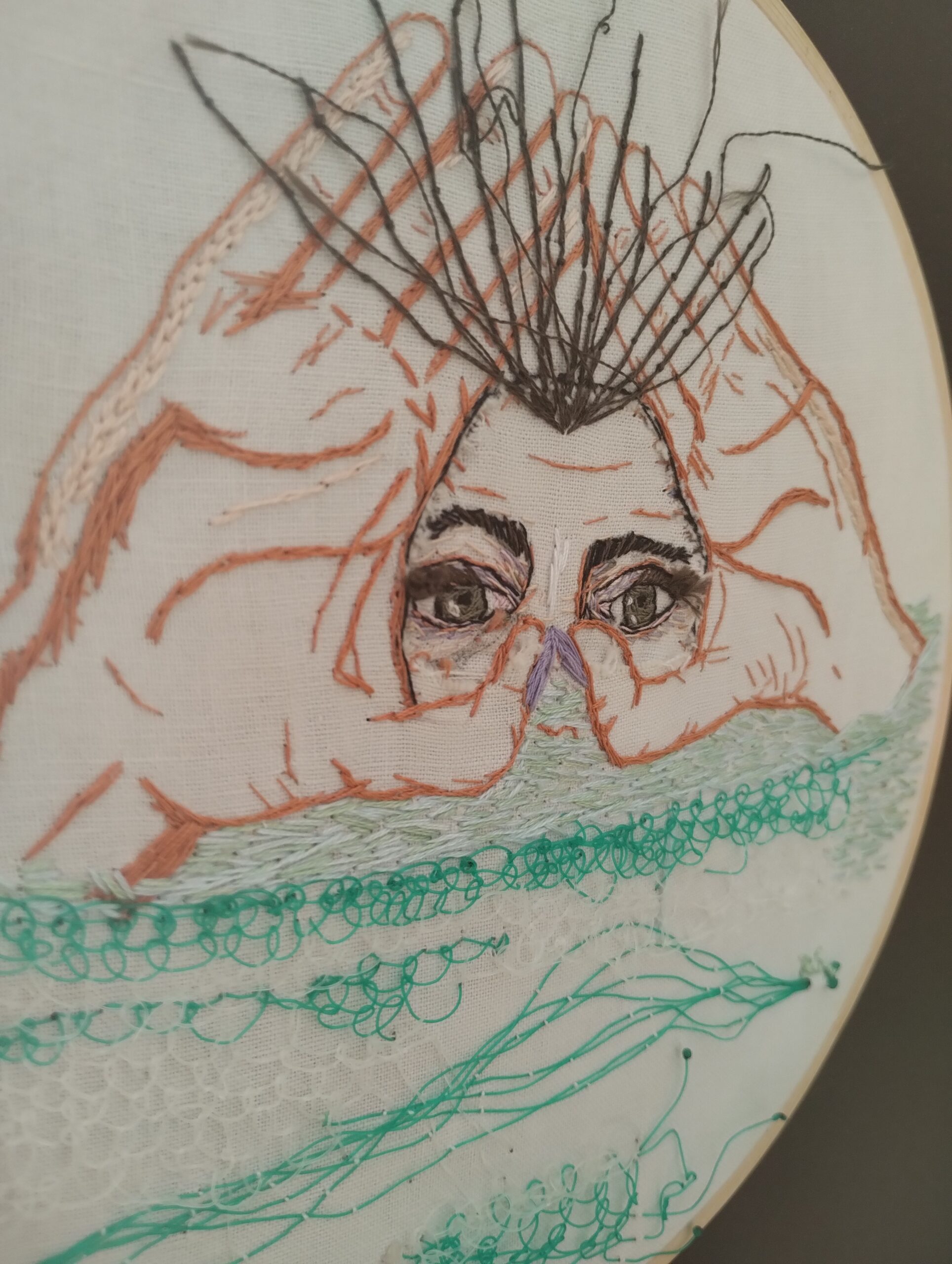 AmuletoBordado manual y serigrafía propia. 11cm.JulioBordado manual en tela antigua. Inspirado en Julio Cortázar. 16cm.BichaBordado de relieve en bastidor original. Lienzo antiguo. 11cmEntramadaBordado manual con apliques de tul. 13cmFondoBordado con tanza recuperada de la costa. En tela intervenida con tinte natural. 11cmAlma MaterBordado manual. Lienzo teñido con malbec. Bastidor en el que fue realizado. 38cm x 38cmManoCrearBordado manual enmarcado. Bastidor original de confección con aguja utilizada. 18,50cm x 18,50cmInternaBordado manual (revés). 26,5cm x 24cmInternoBordado manual (revés). 29cm x 25cmLa ComuniónBordado en tela con hilos de seda antiguos (pelo) y apliques de telas antiguas. 45cm x 45cm DescalzaÓleo sobre cartón 63cm x 51cmEl SaltoÓleo sobre tela inspirado en Baryshnikov 34cm x 28,5cm El nacimiento de las olasAcuarela intervenida con carbonilla, y bordado en papel. 27,5cm x 26cmIntroIlustración original intervenida. Enmarcada en vidrio. 31cm x 25cmRitualFotografía intervenidaLo que eraFotografía intervenidaCeibo FloreceCollage inspirado en poema con aplique de tejido vintage. 32cm x 25cmGon-KImpulsoCollage analógico. 27,5cm x 22,5cm Re-Misión TransgeneracionalMacramé tejido con apliques de alambre. 78cm x 98cm