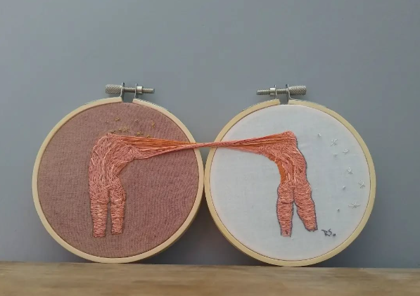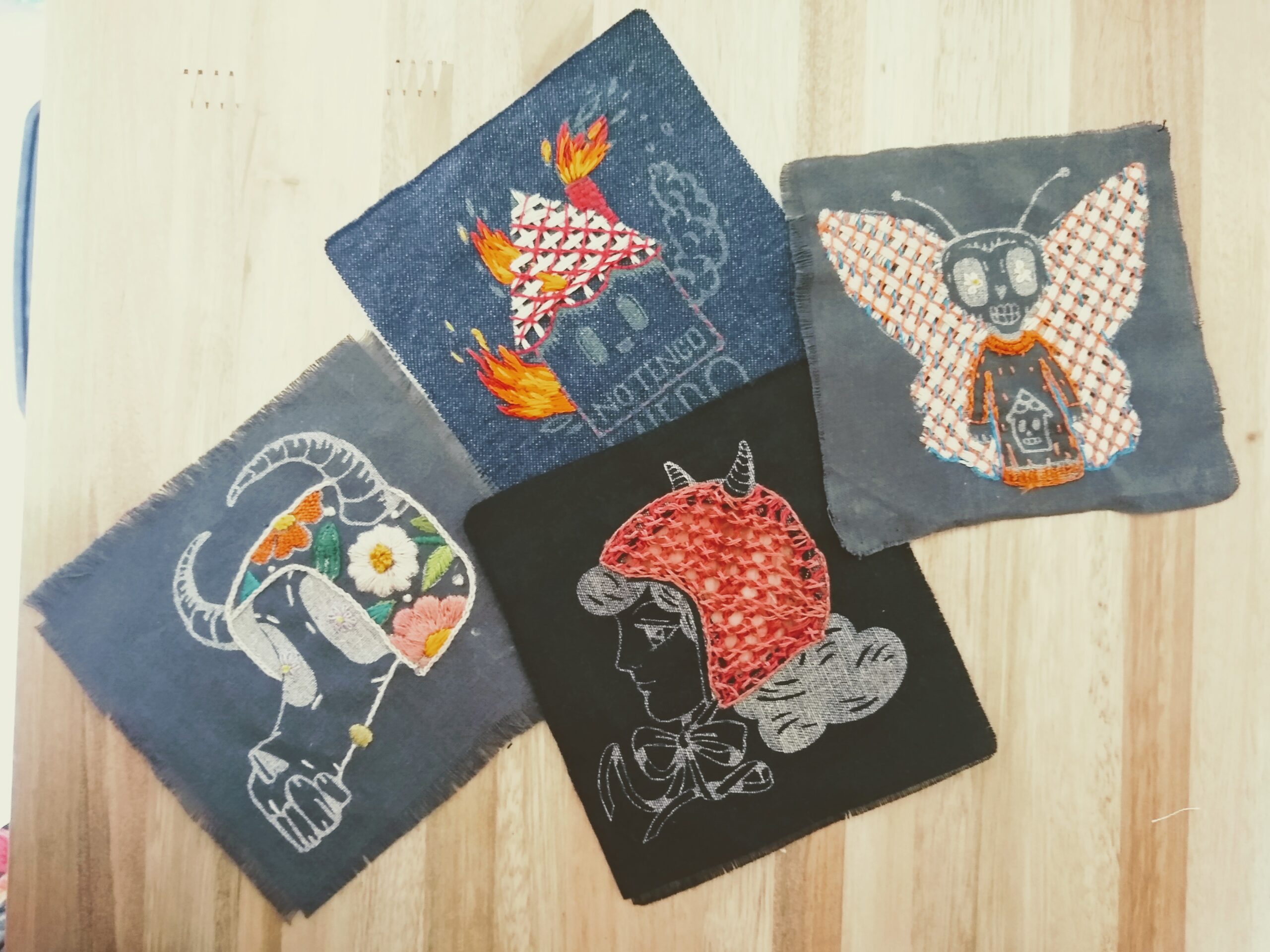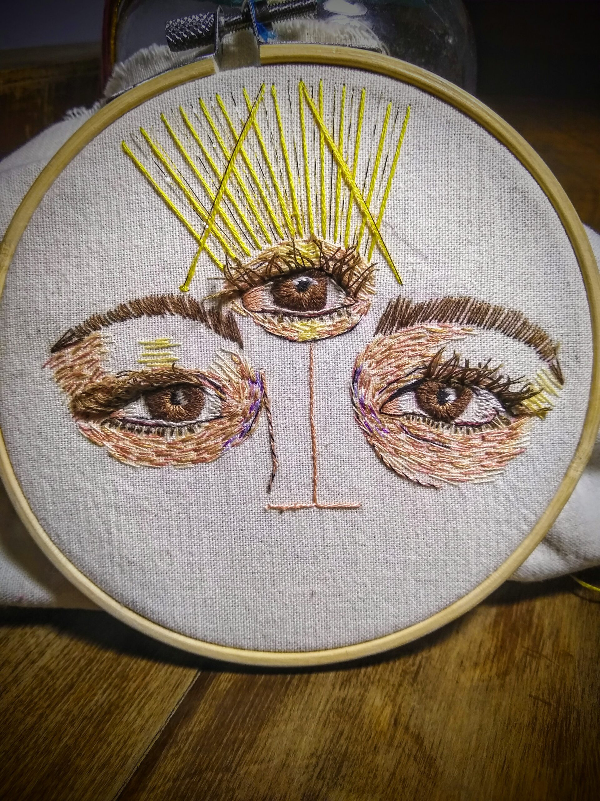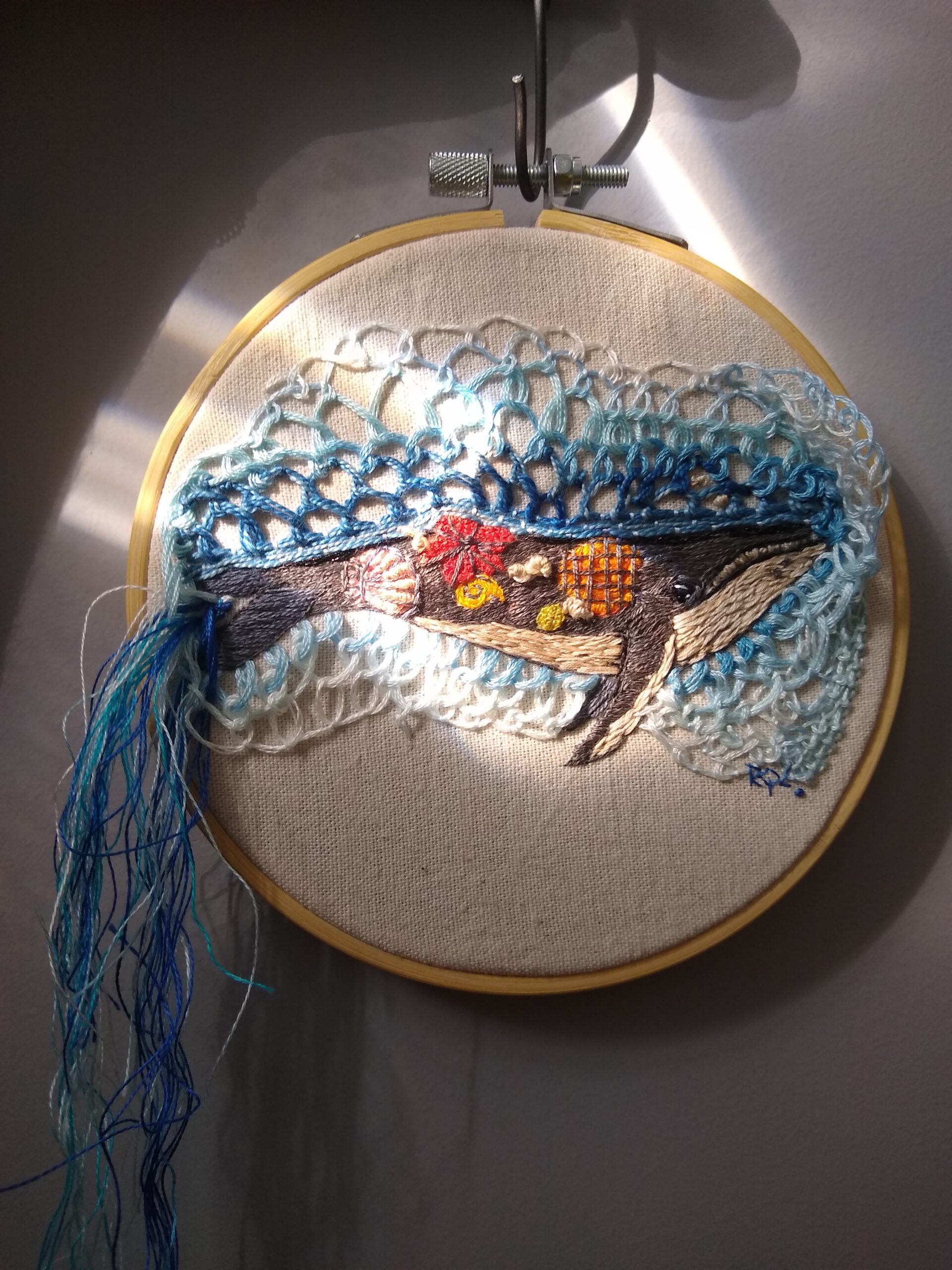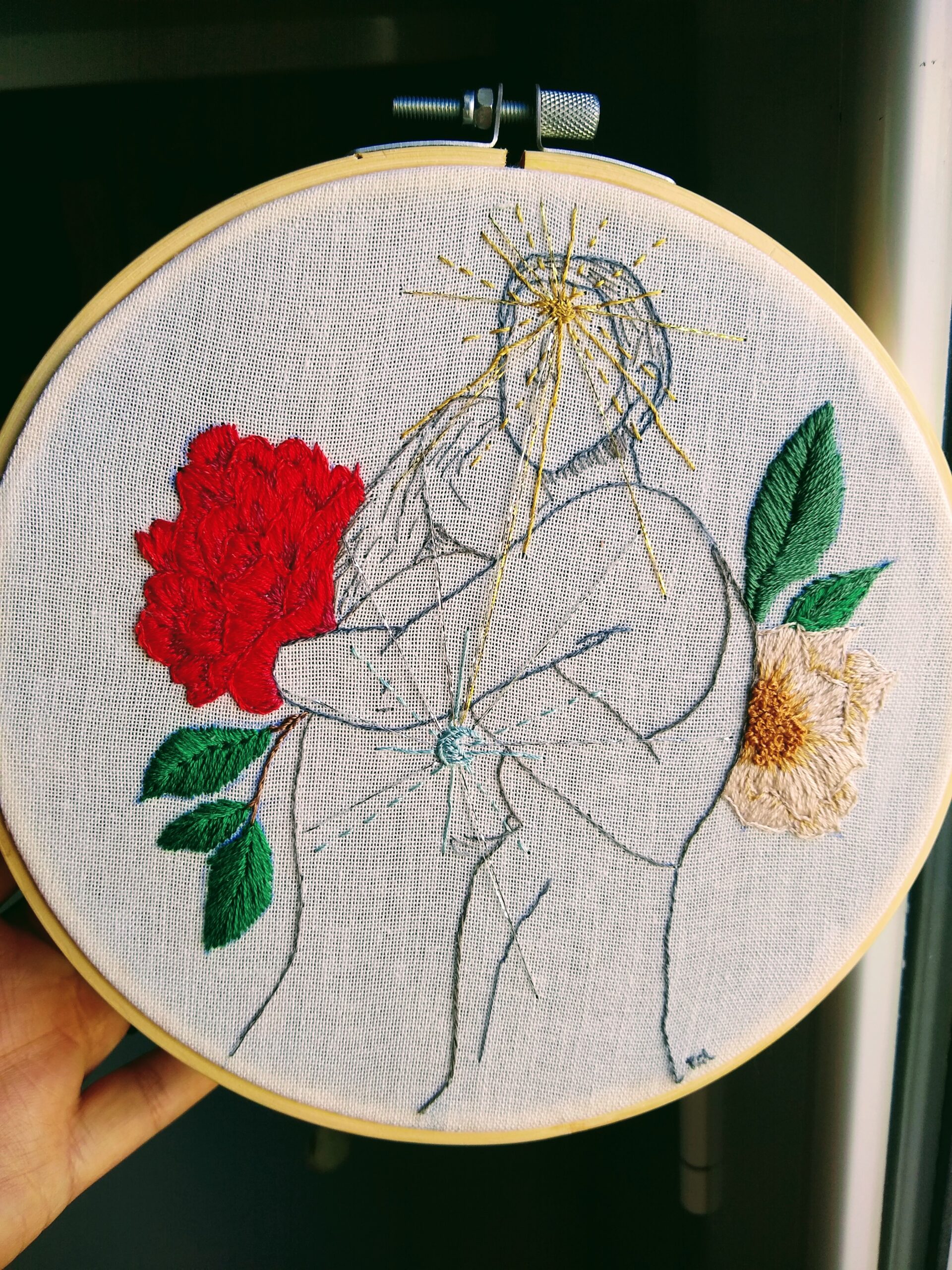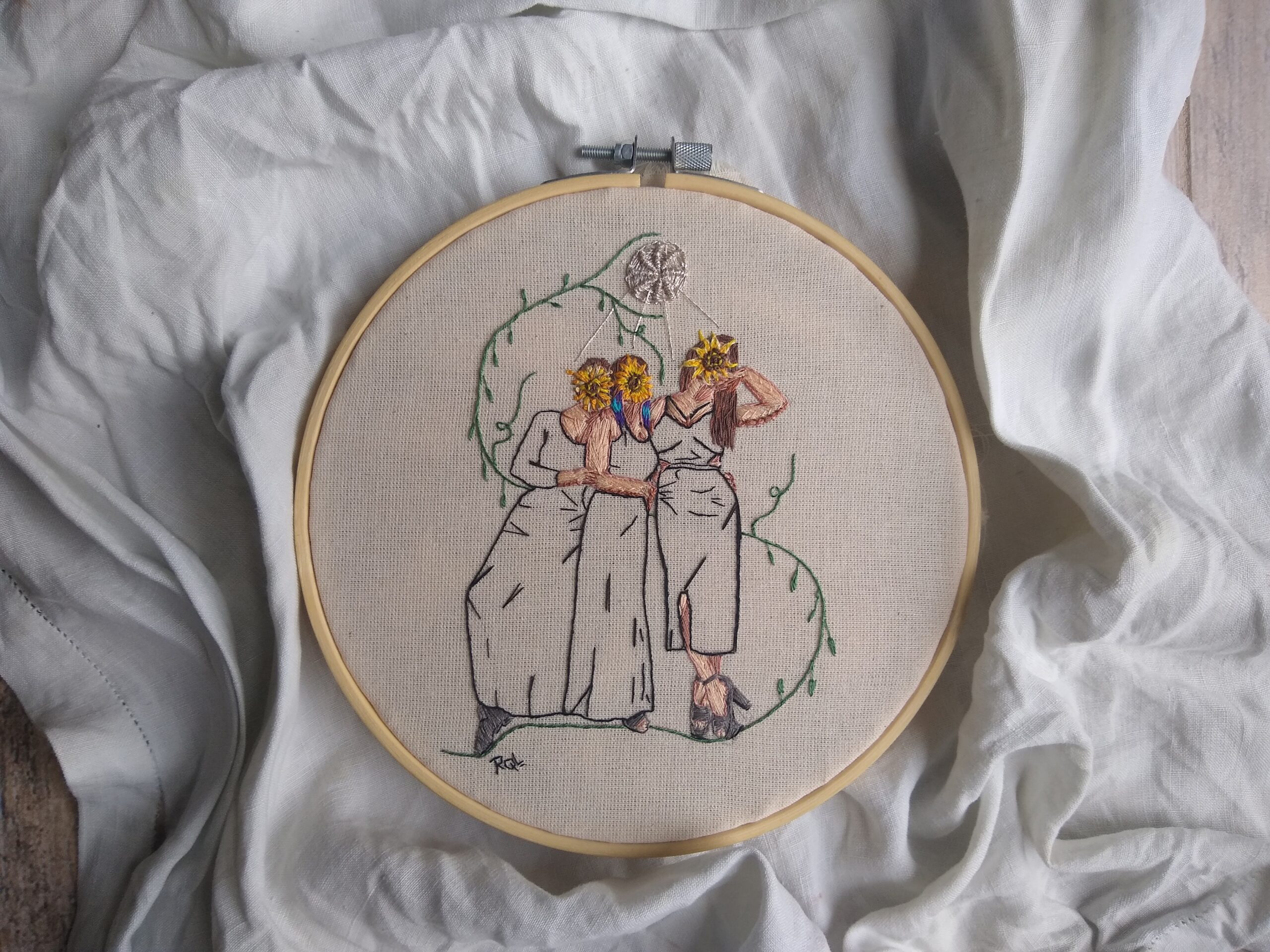 AmuletoBordado manual y serigrafía propia. 11cm.JulioBordado manual en tela antigua. Inspirado en Julio Cortázar. 16cm.BichaBordado de relieve en bastidor original. Lienzo antiguo. 11cmEntramadaBordado manual con apliques de tul. 13cmFondoBordado con tanza recuperada de la costa. En tela intervenida con tinte natural. 11cmAlma MaterBordado manual. Lienzo teñido con malbec. Bastidor en el que fue realizado. 38cm x 38cmManoCrearBordado manual enmarcado. Bastidor original de confección con aguja utilizada. 18,50cm x 18,50cmInternaBordado manual (revés). 26,5cm x 24cmInternoBordado manual (revés). 29cm x 25cmLa ComuniónBordado en tela con hilos de seda antiguos (pelo) y apliques de telas antiguas. 45cm x 45cm DescalzaÓleo sobre cartón 63cm x 51cmEl SaltoÓleo sobre tela inspirado en Baryshnikov 34cm x 28,5cm El nacimiento de las olasAcuarela intervenida con carbonilla, y bordado en papel. 27,5cm x 26cmIntroIlustración original intervenida. Enmarcada en vidrio. 31cm x 25cmRitualFotografía intervenidaLo que eraFotografía intervenidaCeibo FloreceCollage inspirado en poema con aplique de tejido vintage. 32cm x 25cmGon-KImpulsoCollage analógico. 27,5cm x 22,5cm Re-Misión TransgeneracionalMacramé tejido con apliques de alambre. 78cm x 98cm