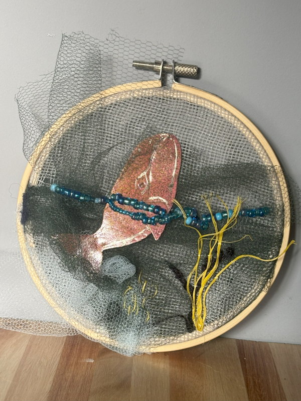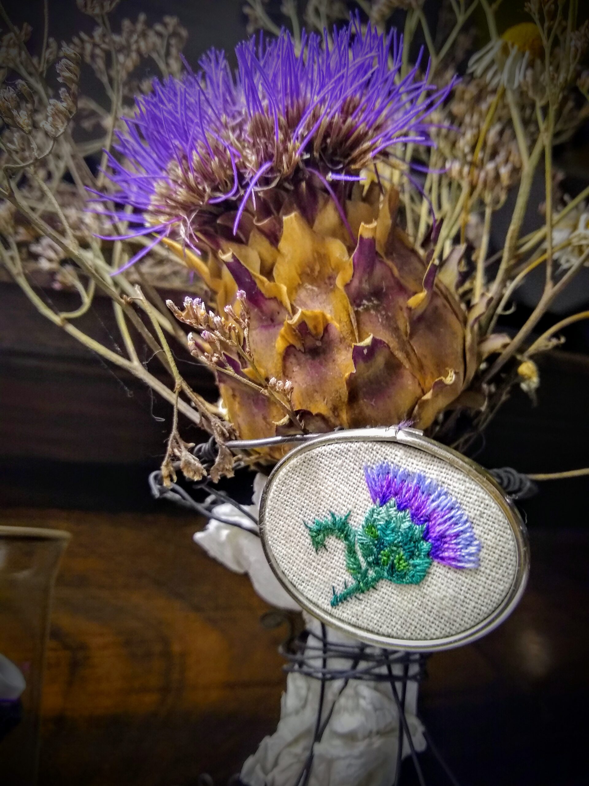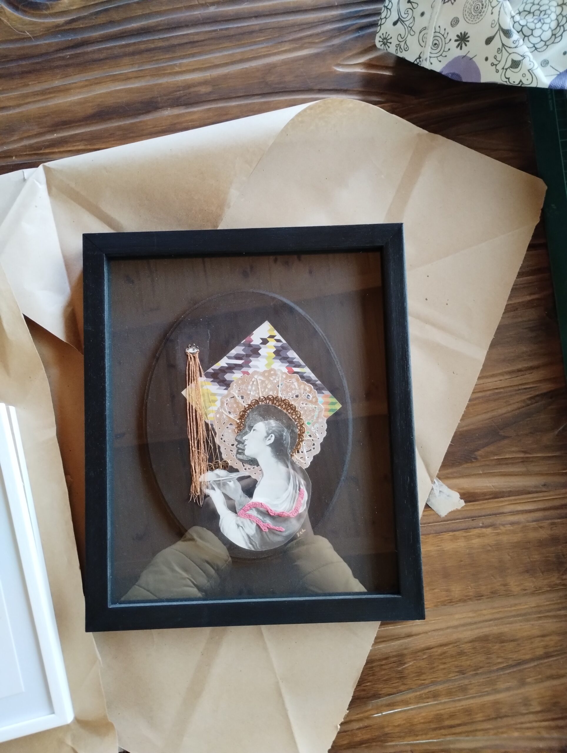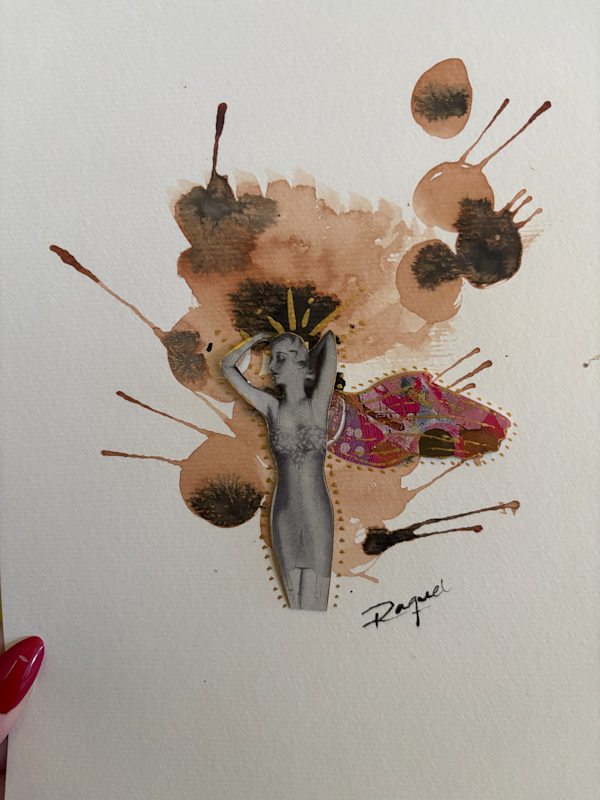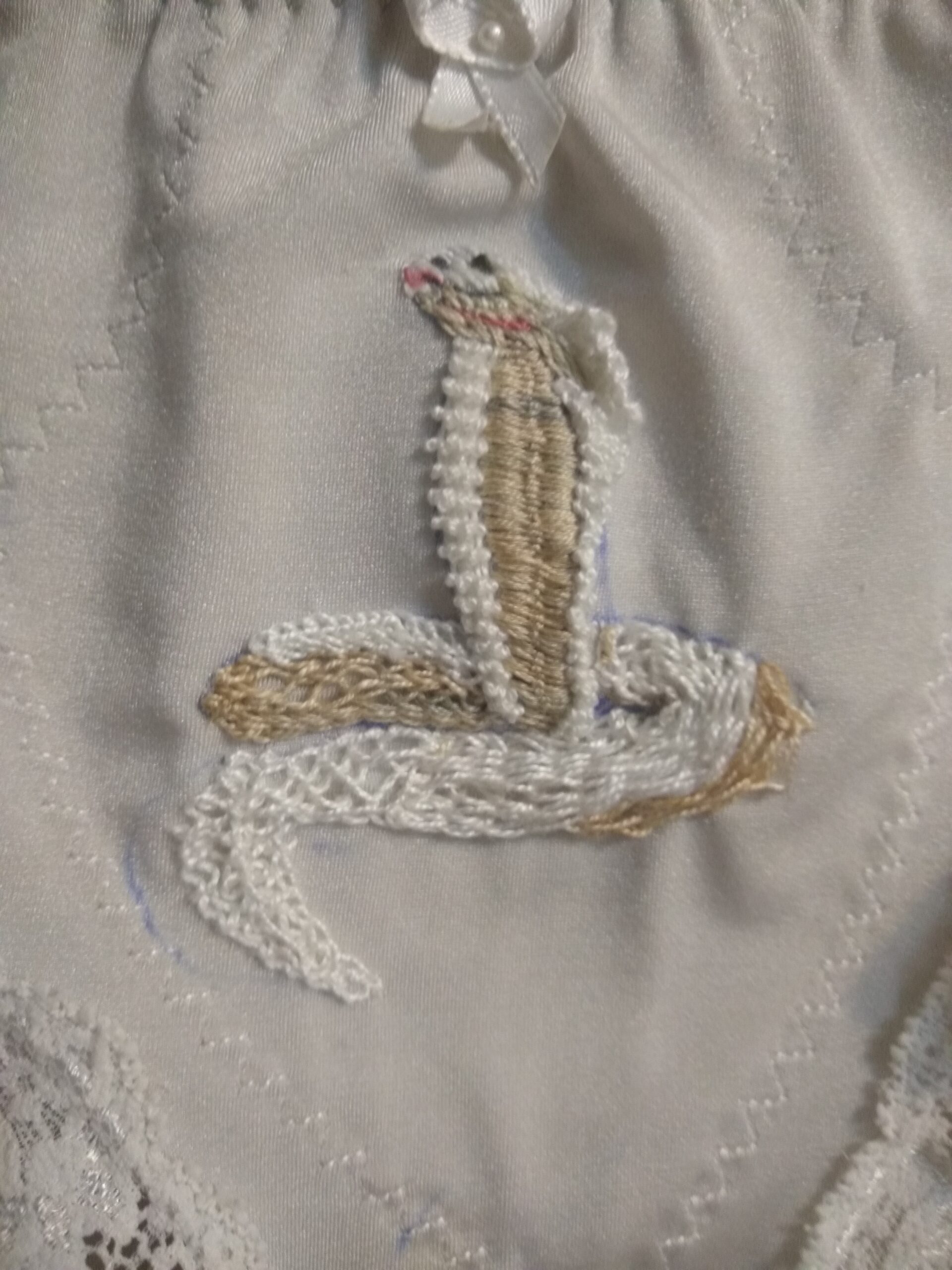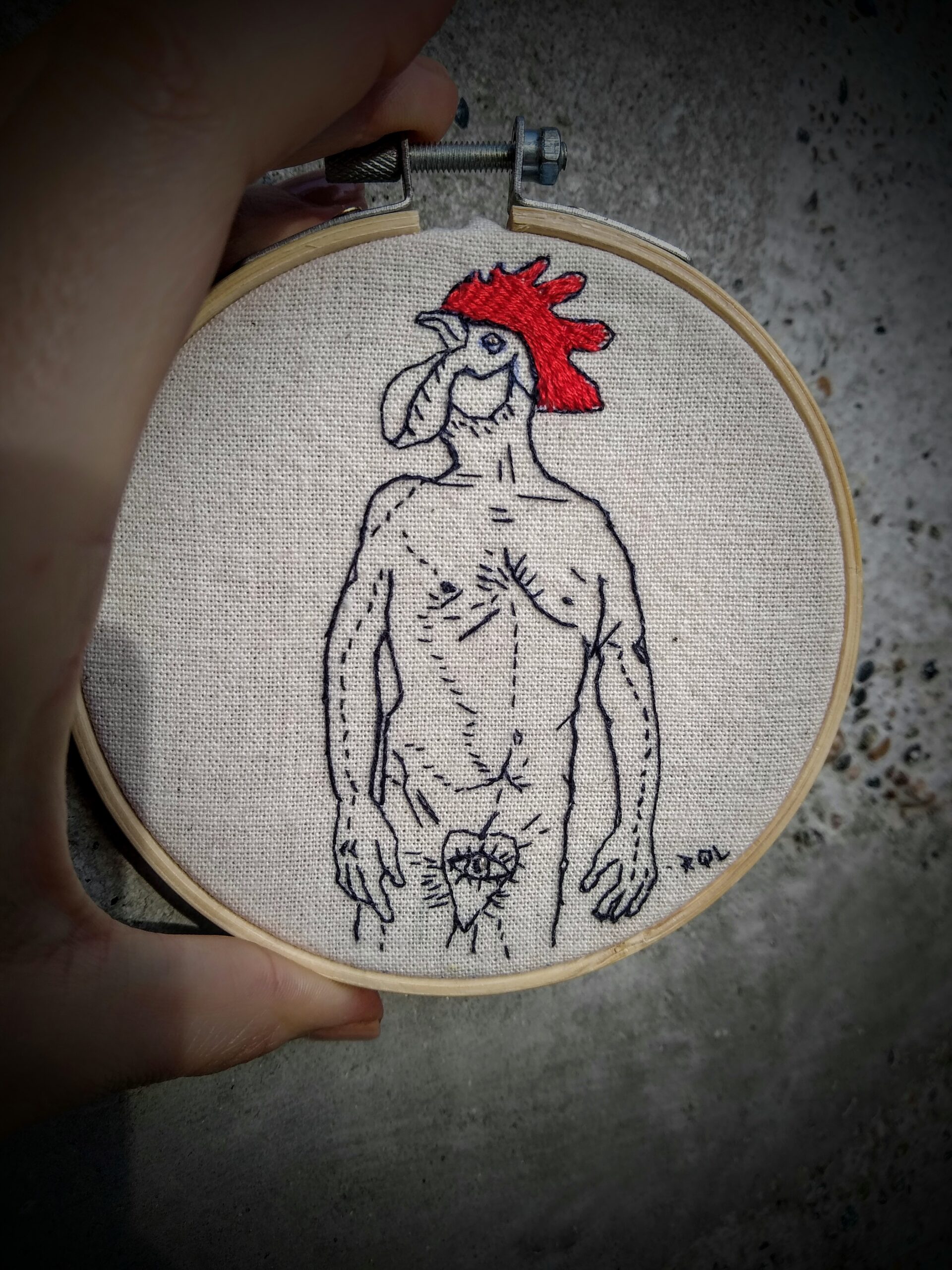 AmuletoBordado manual y serigrafía propia. 11cm.JulioBordado manual en tela antigua. Inspirado en Julio Cortázar. 16cm.BichaBordado de relieve en bastidor original. Lienzo antiguo. 11cmEntramadaBordado manual con apliques de tul. 13cmFondoBordado con tanza recuperada de la costa. En tela intervenida con tinte natural. 11cmAlma MaterBordado manual. Lienzo teñido con malbec. Bastidor en el que fue realizado. 38cm x 38cmManoCrearBordado manual enmarcado. Bastidor original de confección con aguja utilizada. 18,50cm x 18,50cmInternaBordado manual (revés). 26,5cm x 24cmInternoBordado manual (revés). 29cm x 25cmLa ComuniónBordado en tela con hilos de seda antiguos (pelo) y apliques de telas antiguas. 45cm x 45cm DescalzaÓleo sobre cartón 63cm x 51cmEl SaltoÓleo sobre tela inspirado en Baryshnikov 34cm x 28,5cm El nacimiento de las olasAcuarela intervenida con carbonilla, y bordado en papel. 27,5cm x 26cmIntroIlustración original intervenida. Enmarcada en vidrio. 31cm x 25cmRitualFotografía intervenidaLo que eraFotografía intervenidaCeibo FloreceCollage inspirado en poema con aplique de tejido vintage. 32cm x 25cmGon-KImpulsoCollage analógico. 27,5cm x 22,5cm Re-Misión TransgeneracionalMacramé tejido con apliques de alambre. 78cm x 98cm